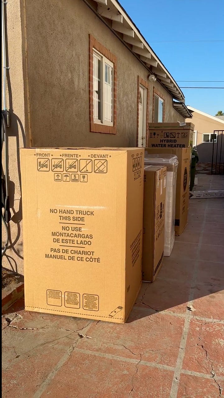 Living in LA, we get almost 300 days of sunshine per year, which means most of the time we are doing laundry - we use a solar powered dryer (we hang our clothes in the sun), but this isn’t always the case, so we upgraded to our old washer and dryer to electric ones.